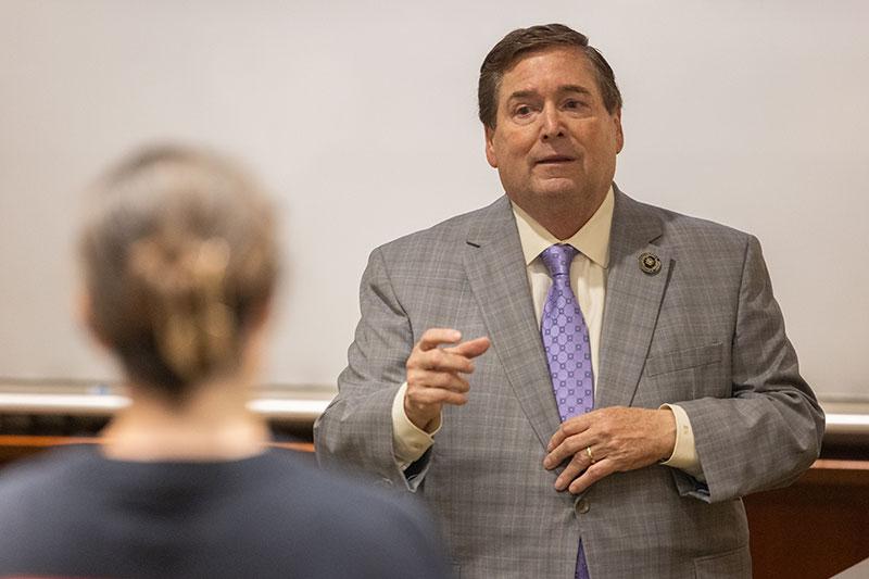 Speaking to Professor of Practice Larry Merington’s Business Capstone class, Nungesser, who has served as lieutenant governor since 2016, began by describing his first venture, General Marine Leasing Co.